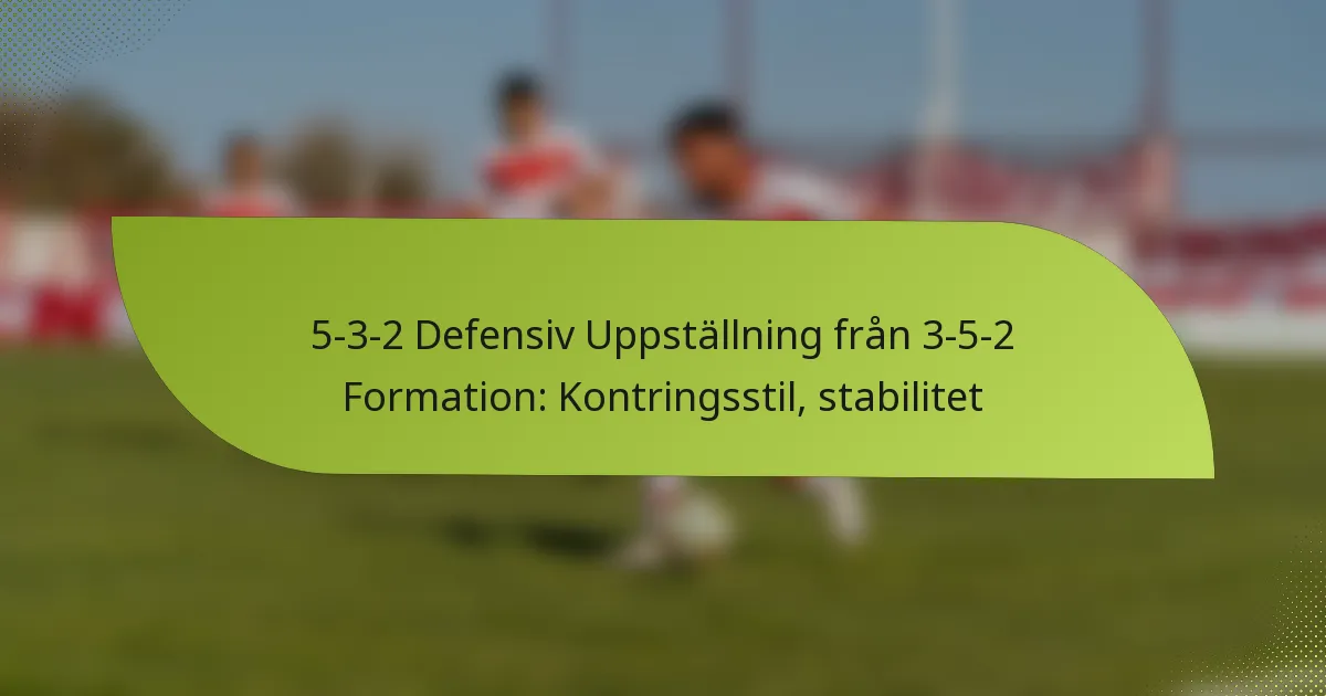 5-3-2 defensivuppställning är en taktisk formation inom fotboll som prioriterar defensiv styrka samtidigt som den möjliggör snabba kontringar. Med fem försvarare och tre mittfältare skapar denna formation en robust defensiv linje och ett kompakt mittfält, vilket minimerar luckor och förbättrar lagets sammanhållning. Denna struktur stärker inte bara försvaret utan positionerar också lagen för att utnyttja möjligheter under övergångar. Vad är 5-3-2 defensivuppställning inom fotboll? 5-3-2 defensivuppställning är en taktisk formation inom fotboll som betonar defensiv soliditet samtidigt som den tillåter snabba kontringar. Den har fem försvarare, tre mittfältare och två anfallare, vilket skapar en stark defensiv linje och en kompakt…