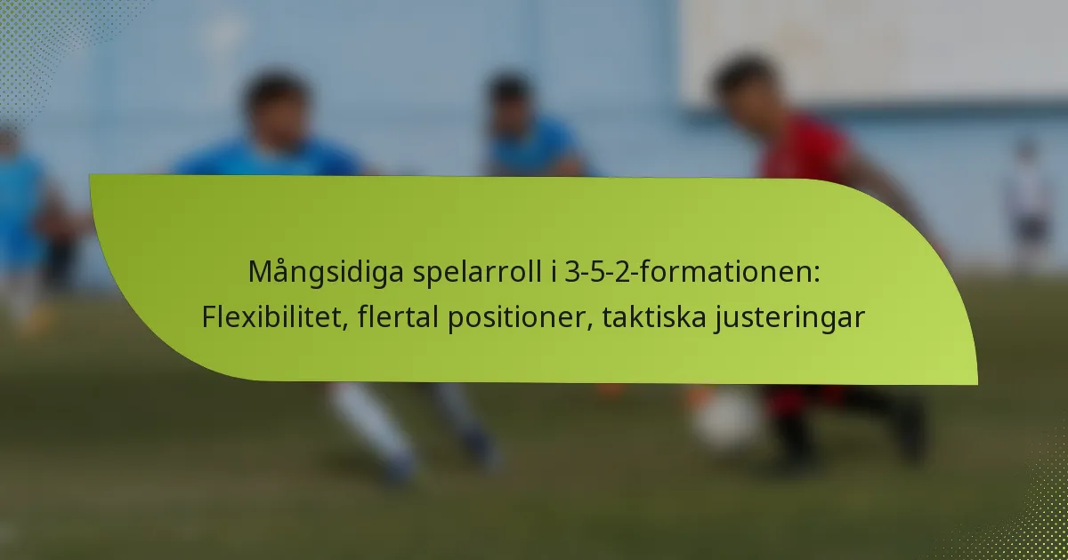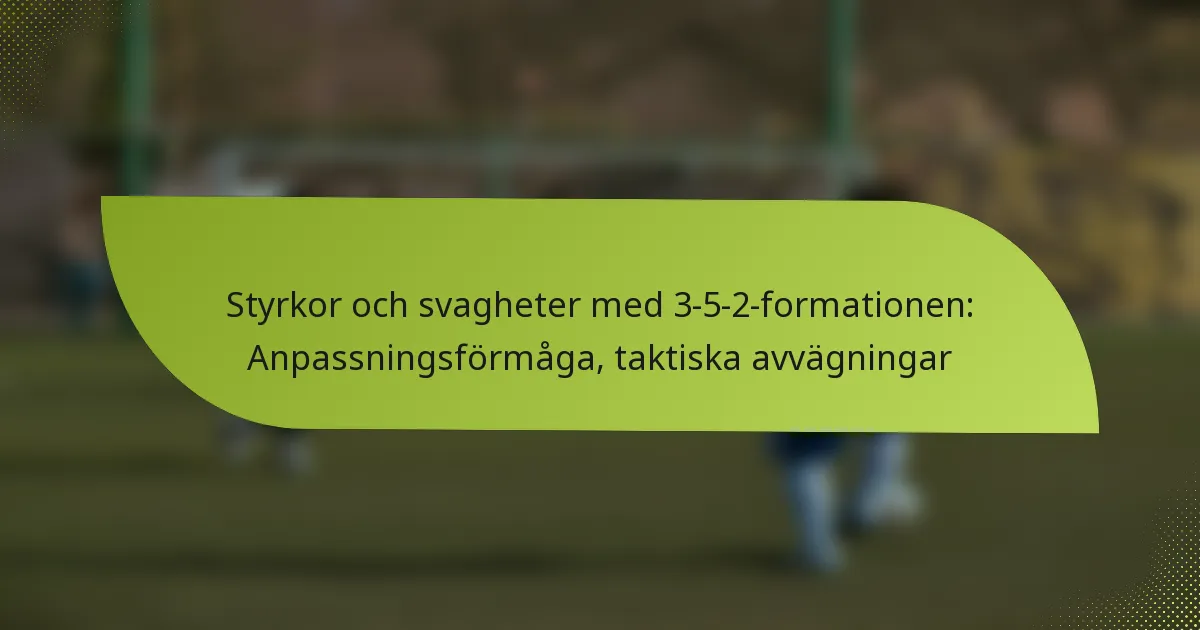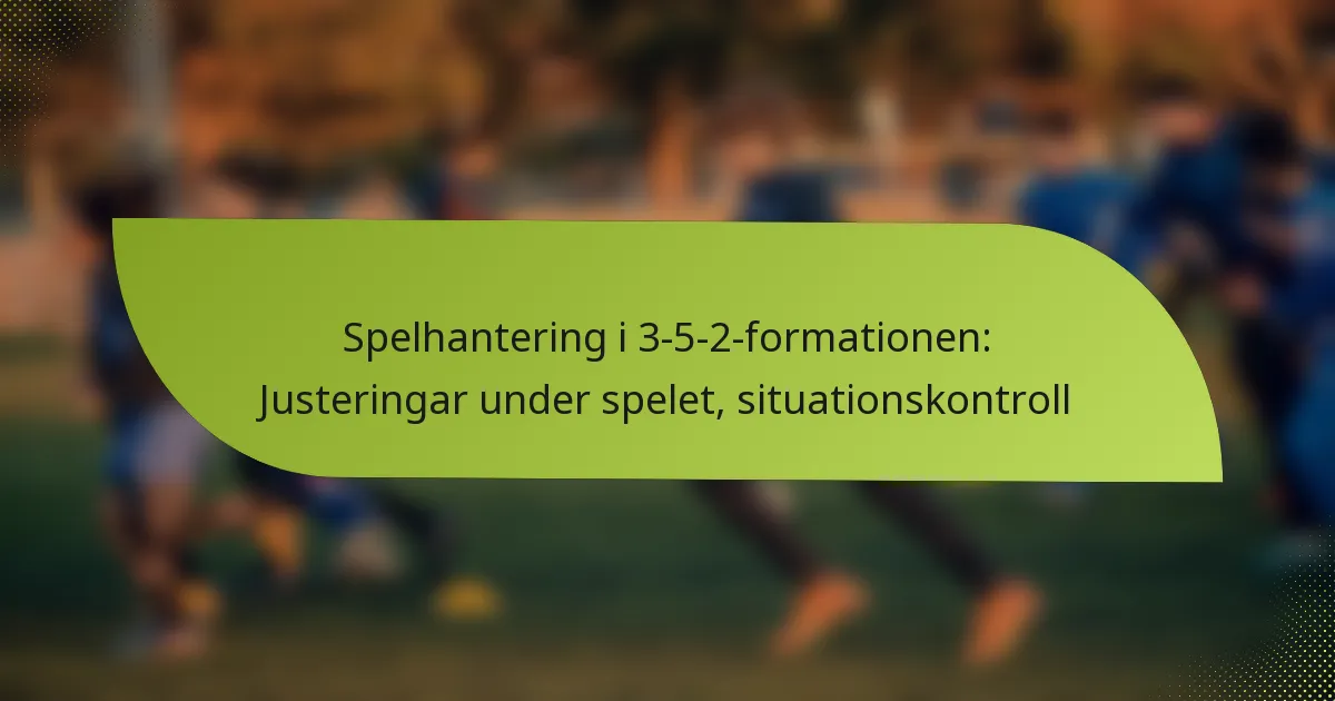 3-5-2-formationen är en taktisk uppställning inom fotboll som betonar kontroll på mittfältet med tre försvarare, fem mittfältare och två anfallare, vilket ger både defensiv stabilitet och offensiva alternativ. Justeringar under matchen är avgörande för tränare för att behålla kontrollen och anpassa sig till matchens föränderliga dynamik, vilket kräver taktisk flexibilitet och effektiv kommunikation. Genom att förstå de situationsspecifika aspekterna av spelet kan lag optimera sina strategier för att svara på olika matchsituationer, vilket säkerställer att de förblir organiserade defensivt samtidigt som de utnyttjar kontringsmöjligheter. Vad är 3-5-2-formationen och dess nyckelkarakteristika? 3-5-2-formationen är en taktisk uppställning inom fotboll som har tre…