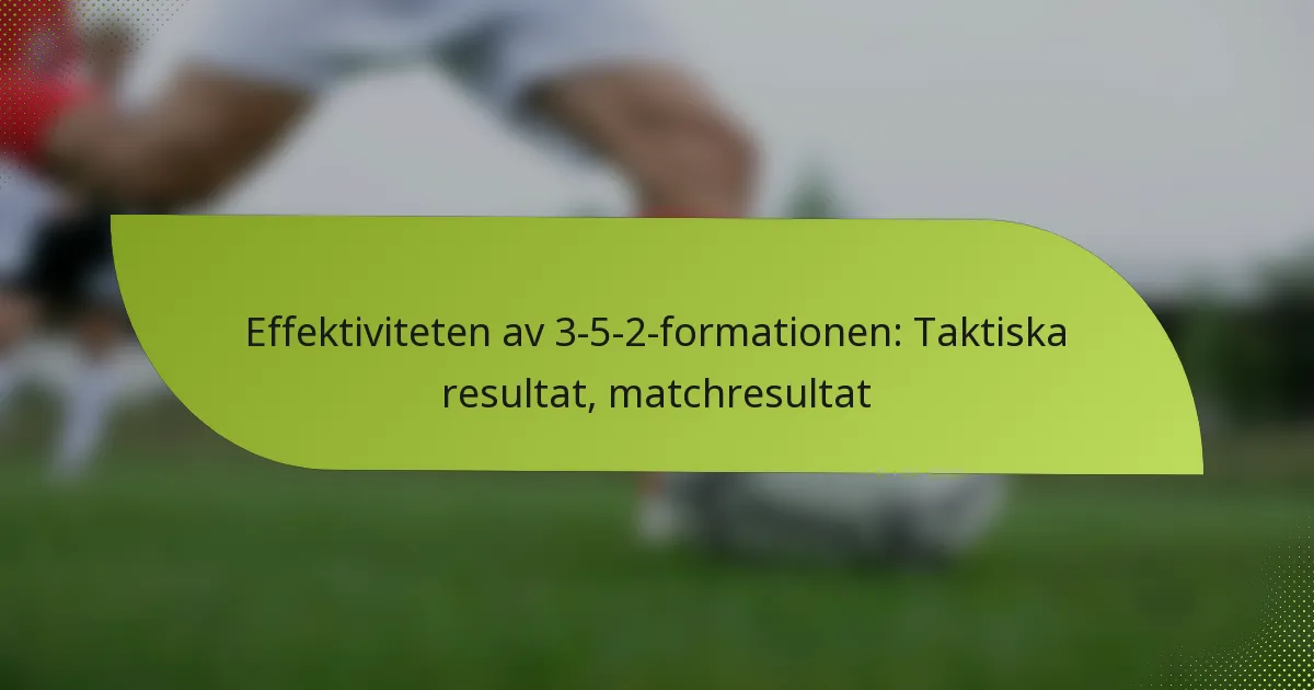 3-5-2-formationen är känd för sin taktiska mångsidighet, som slår en balans mellan defensiv styrka och offensiva möjligheter. Genom att betona kontrollen på mittfältet tillåter denna uppställning lag att anpassa sig till olika matchsituationer, vilket gör den till ett populärt val för dem som söker strategisk flexibilitet och sammanhållen spel. Vilka är de taktiska resultaten av 3-5-2-formationen? 3-5-2-formationen är känd för sin taktiska mångsidighet, som erbjuder en balans mellan defensiv soliditet och offensiv potential. Denna uppställning betonar stark kontroll på mittfältet och kan anpassa sig till olika matchsituationer, vilket gör den till ett populärt val bland lag som strävar efter sammanhållet…