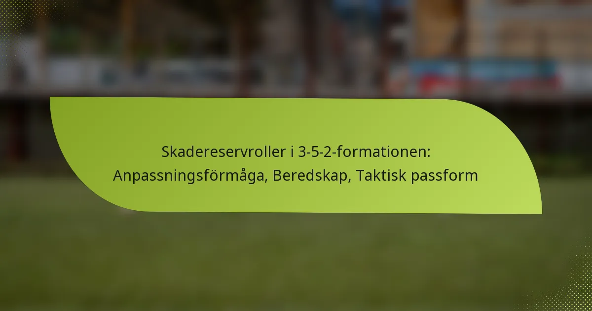 I 3-5-2-formationen är roller för skadeersättning avgörande för att upprätthålla lagets dynamik och prestation när nyckelspelare är otillgängliga. Effektiva avbytare måste ha anpassningsförmåga och taktisk förståelse för att sömlöst passa in i den befintliga strukturen, vilket säkerställer att lagets strategi förblir sammanhållen. Genom att utnyttja spelarnas mångsidighet och förbättra kommunikationen kan lag navigera genom de utmaningar som skador medför samtidigt som de behåller sin konkurrensfördel. Vilka är rollerna för skadeersättning i 3-5-2-formationen? I 3-5-2-formationen är roller för skadeersättning kritiska för att upprätthålla lagets prestation när en spelare är skadad. Dessa roller kräver avbytare som kan integreras sömlöst i den taktiska…