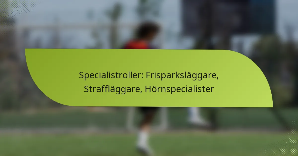 Inom fotboll spelar specialistroller som frisparksläggare, straffläggare och hörnspecialister en avgörande roll i fasta situationer. Varje roll kräver specifika färdigheter och egenskaper som kan påverka ett lags strategi och framgång på planen. Mästerskap inom dessa områden förbättrar inte bara målchanser utan ger också en taktisk fördel i spelet. Vilka är specialistrollerna inom fotboll relaterade till fasta situationer? Specialistroller inom fotboll relaterade till fasta situationer inkluderar frisparksläggare, straffläggare och hörnspecialister. Var och en av dessa roller kräver unika färdigheter och egenskaper som kan påverka spelstrategin och resultaten avsevärt. Definition av frisparksläggare och deras färdigheter Frisparksläggare är spelare som är utsedda att…