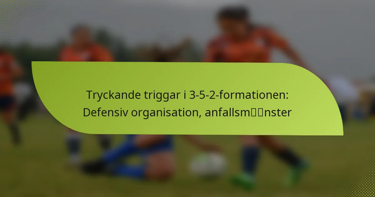 3-5-2-formationen är en taktisk uppställning inom fotboll som kombinerar tre centrala försvarare, fem mittfältare och två anfallare, vilket erbjuder en balans mellan defensiv styrka och offensiva alternativ. Effektiv pressning utlöses inom denna formation och är avgörande för att upprätthålla defensiv organisation och möjliggöra snabba övergångar till anfall, eftersom de dikterar när spelarna gemensamt ska applicera press för att återfå bollen. Att förstå dessa utlösare gör att lag kan optimera sina defensiva strategier samtidigt som de maximerar offensiva möjligheter. Vad är 3-5-2-formationen inom fotboll? 3-5-2-formationen är en taktisk uppställning inom fotboll som har tre centrala försvarare, fem mittfältare och två anfallare.…